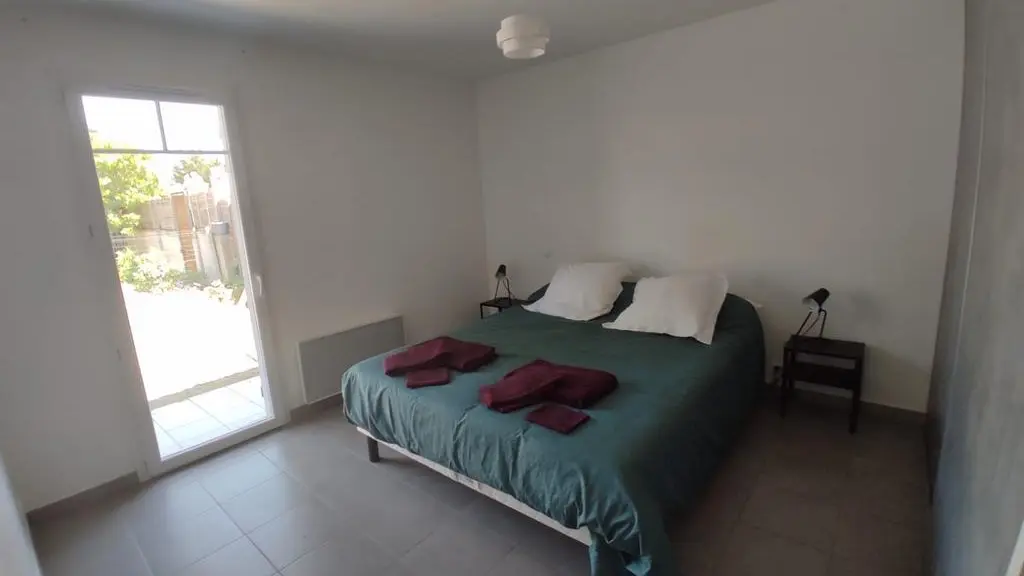 Es verfügt im Erdgeschoss über einen Wohnbereich mit ausgestatteter Küche, ein Badezimmer mit WC und ein Schlafzimmer mit einem Bett (160 x 200 cm) und direktem Zugang zum Garten.