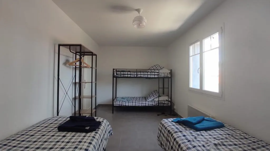 -Ein Schlafzimmer: ein Etagenbett (90 cm) und zwei Betten (90 x 200 cm).