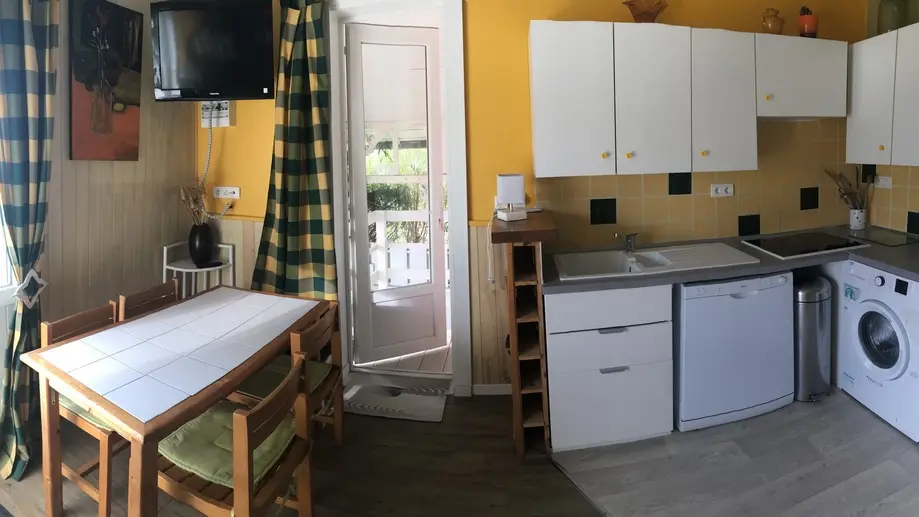 2 cuartos de ducha contiguos a las habitaciones, 2 WC, barbacoa, muebles de jardín bajo galería cubierta orientada al sur. Wifi .muy confortable.