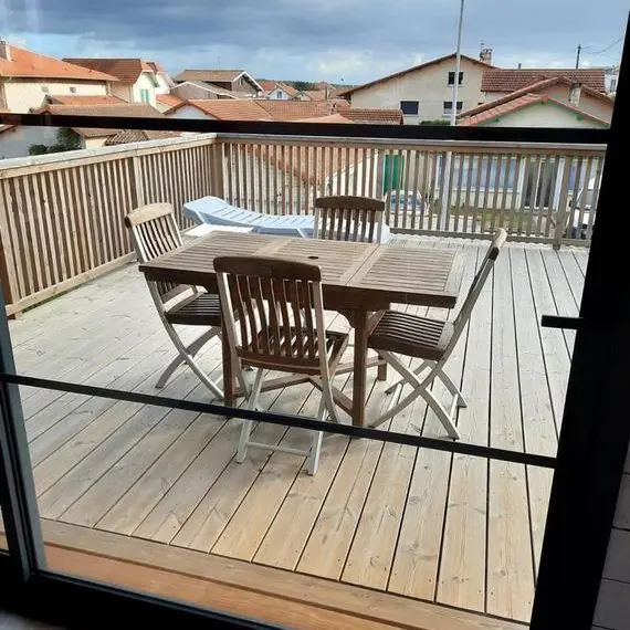¿Sueña con ir al mar en traje de baño? ¡Este es el lugar! Precioso piso de 70m2, construido en 2019 encima de una casa a 50m de la playa. -Amplia terraza de 40m2 con vistas a las dunas y gran salón con isla de cocina totalmente equipada -2 dormitorios de 12 m2 (cama 160x200 Y cama 140x190 + cama 90x190) -Baño y WC separados, con ventanas -No fumar -2 Bicicletas y 3 Bodyboards a su disposición .